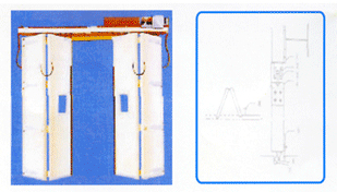 신원 접이식 도어는 좁은 공간에서도 넓은 개구부로 인하여 기계나 물품등의 반입이 편리하므로 산업용 건축물에 많이 이용됩니다.